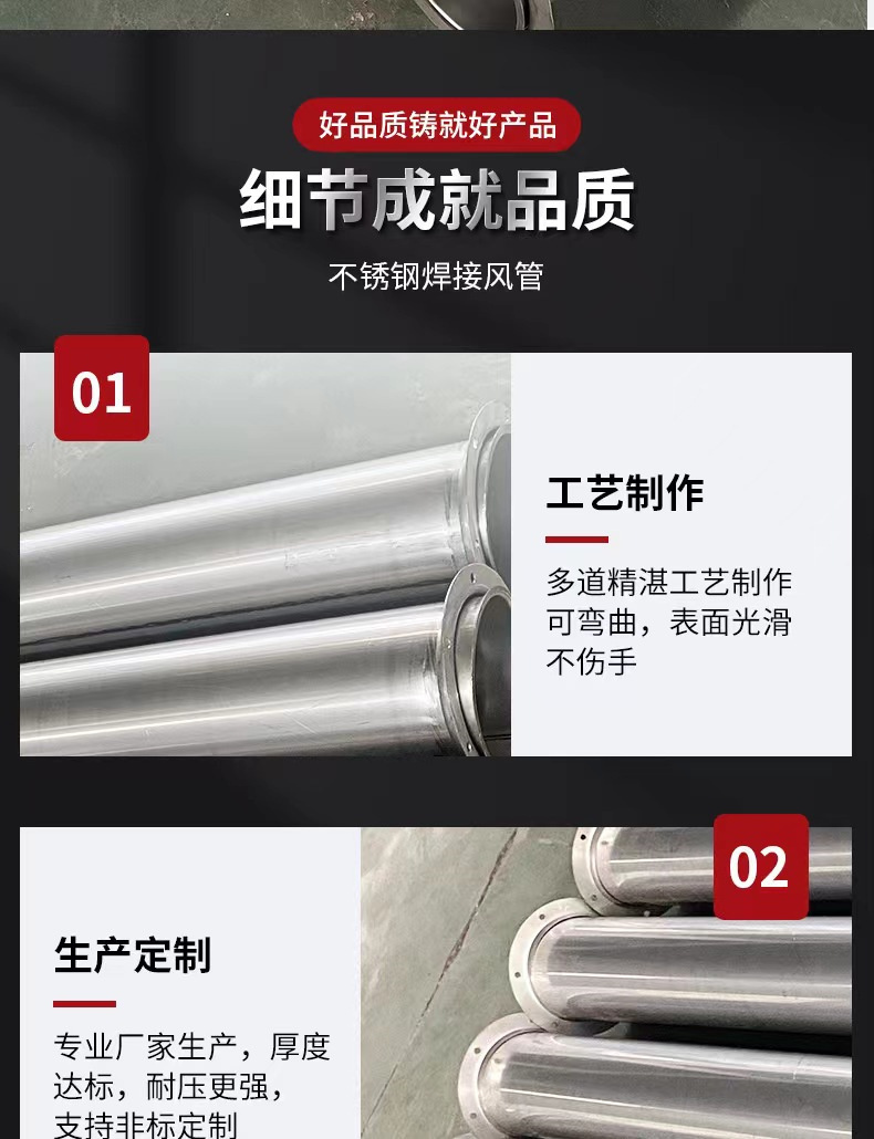 坪山不锈钢风管生产厂家供应304不锈钢焊接圆形风管 不锈钢满焊圆形风管加工