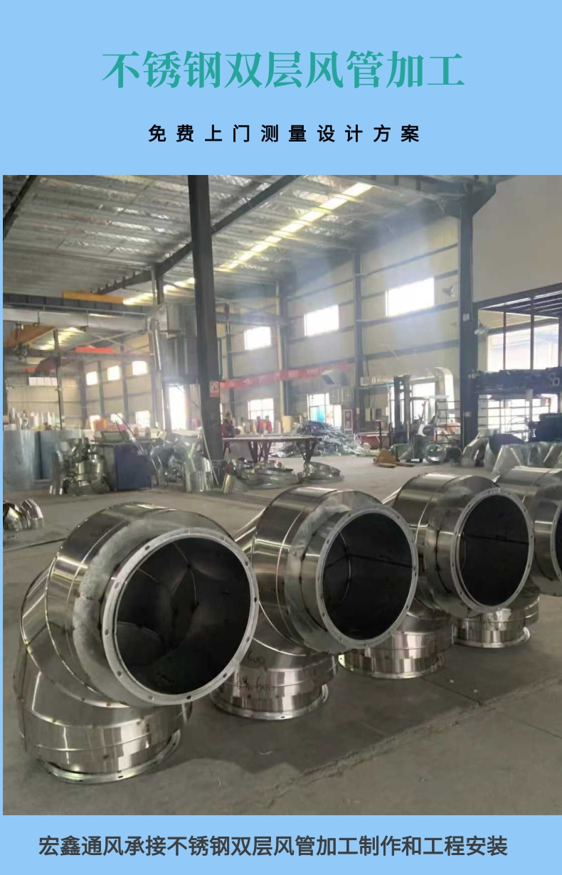 宏鑫不锈钢风管生产厂家供应304不锈钢双层保温风管 发电机排烟管道安装